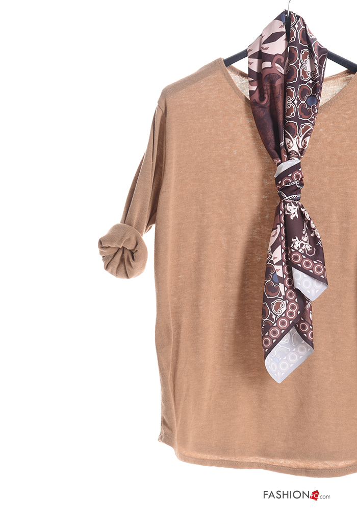 Home > Roupa > Camisas & Blusas > Túnica em Lã mista com cachecol