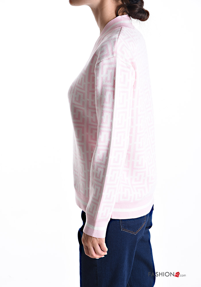 Camisola em Lã mista manga comprida Padrão Geométrico gola V