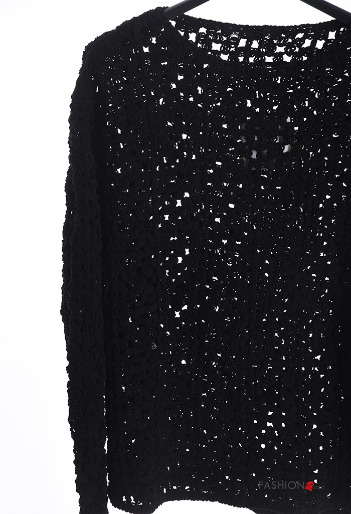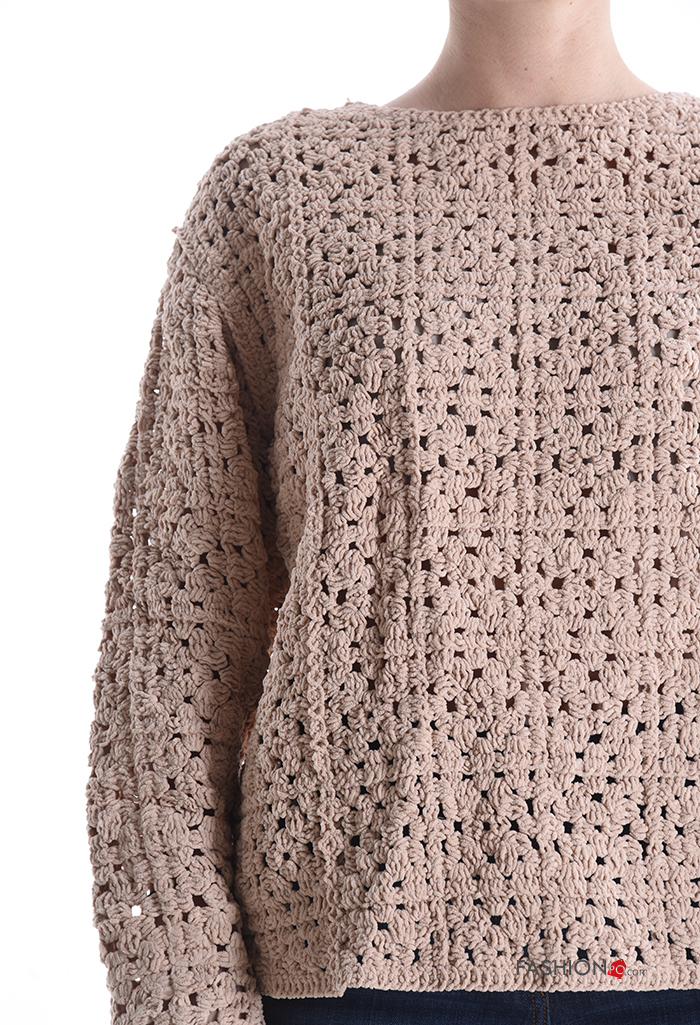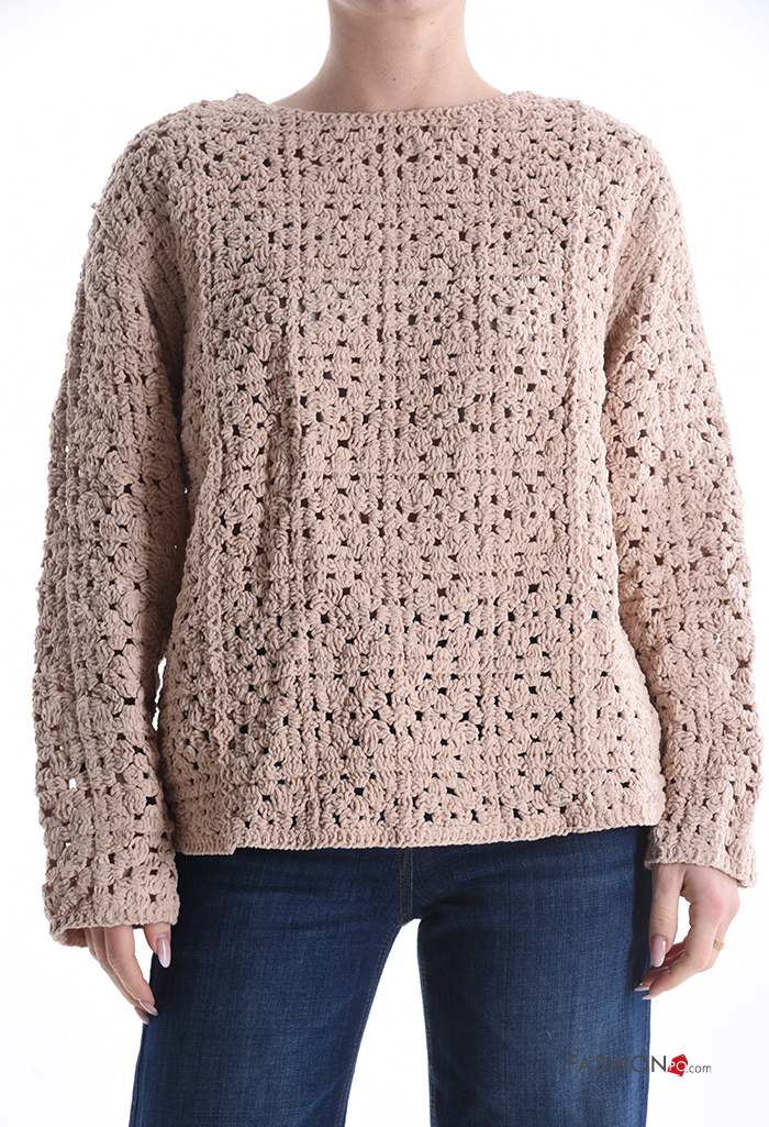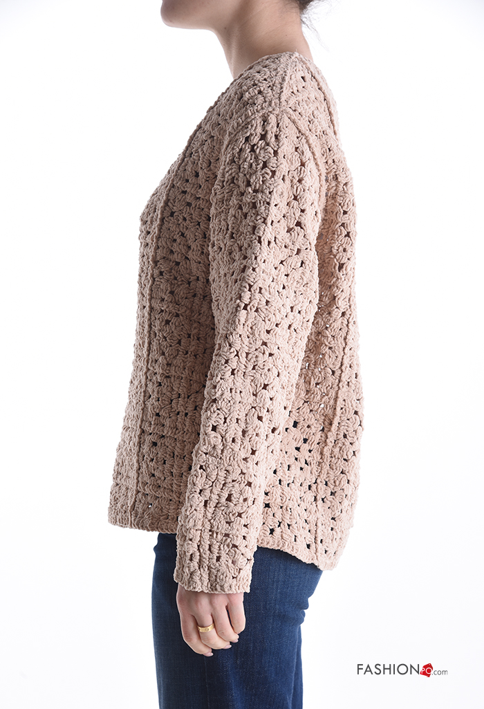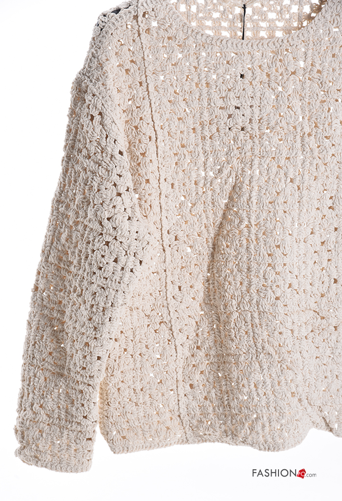 Home > Roupa > Cardigãs & Camisolas > Camisola croché manga comprida gola redonda Padrão bordado