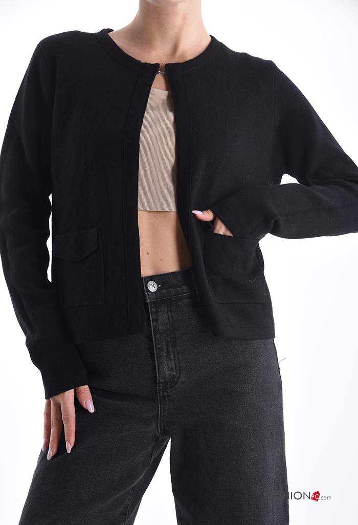 Home > Roupa > Cardigãs & Camisolas > Cardigã manga comprida gola redonda com bolsos