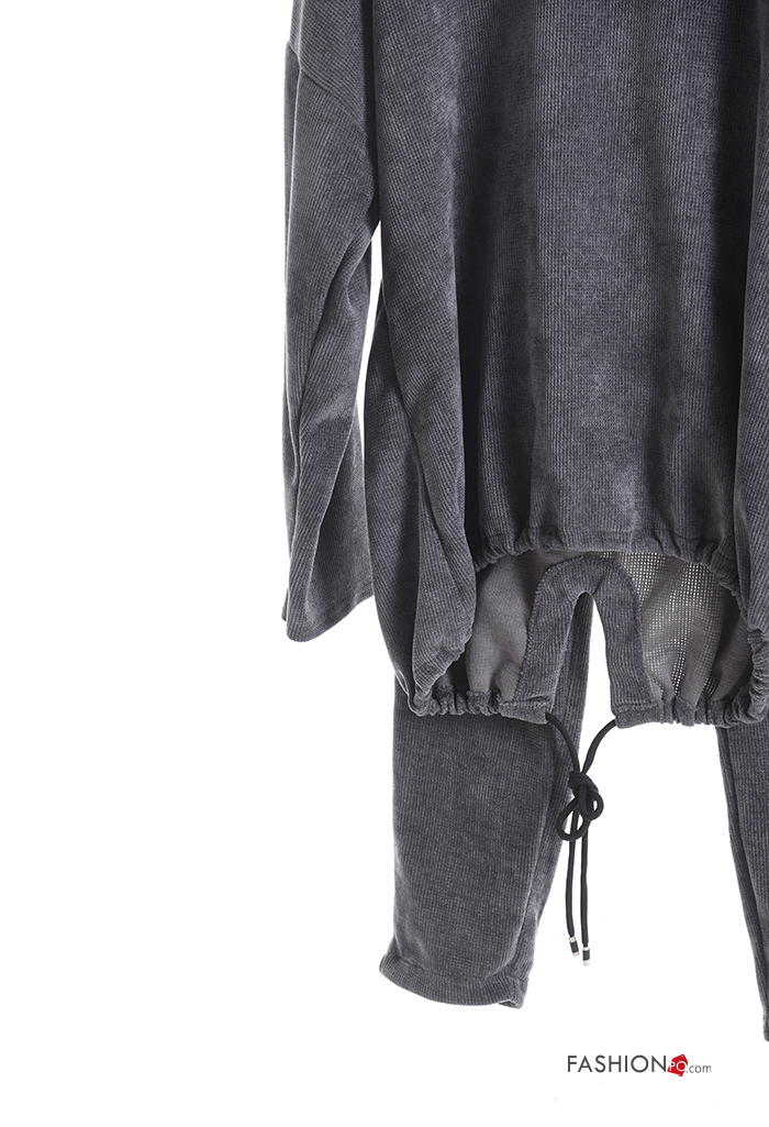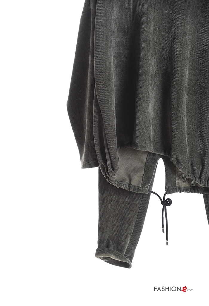 Conjunto manga comprida gola redonda com bolsos com cordão com elástico