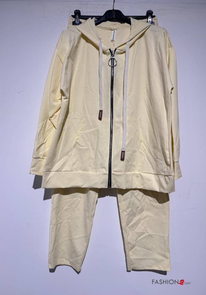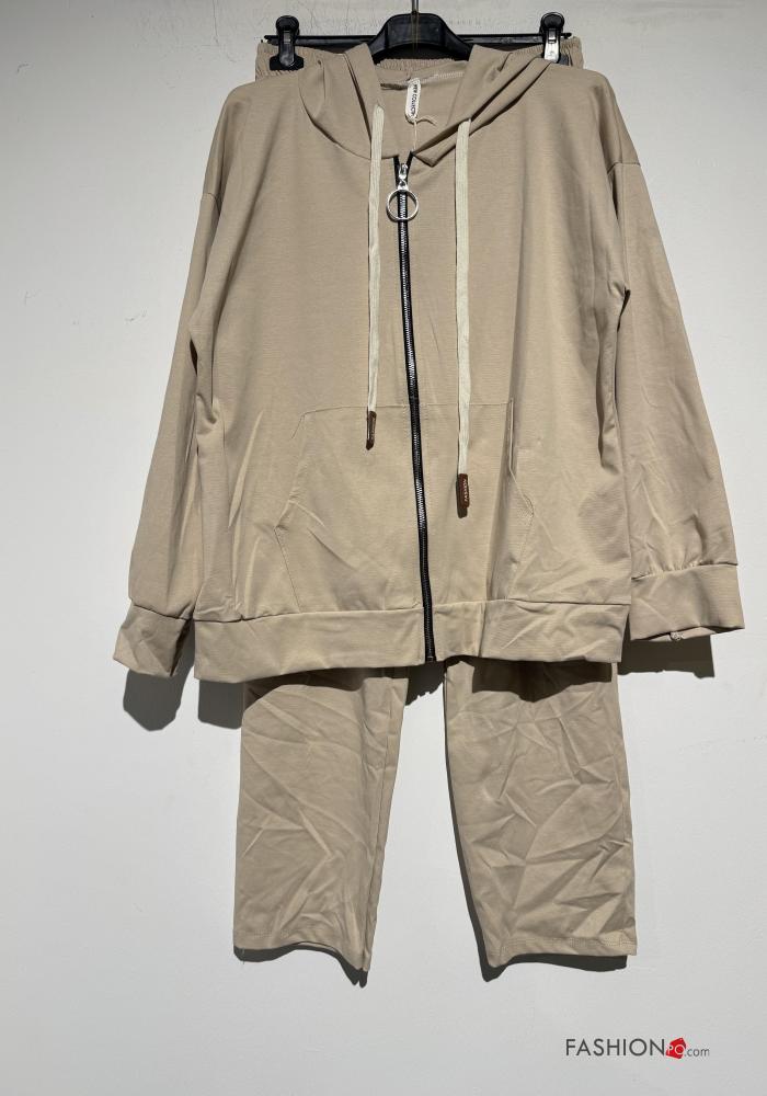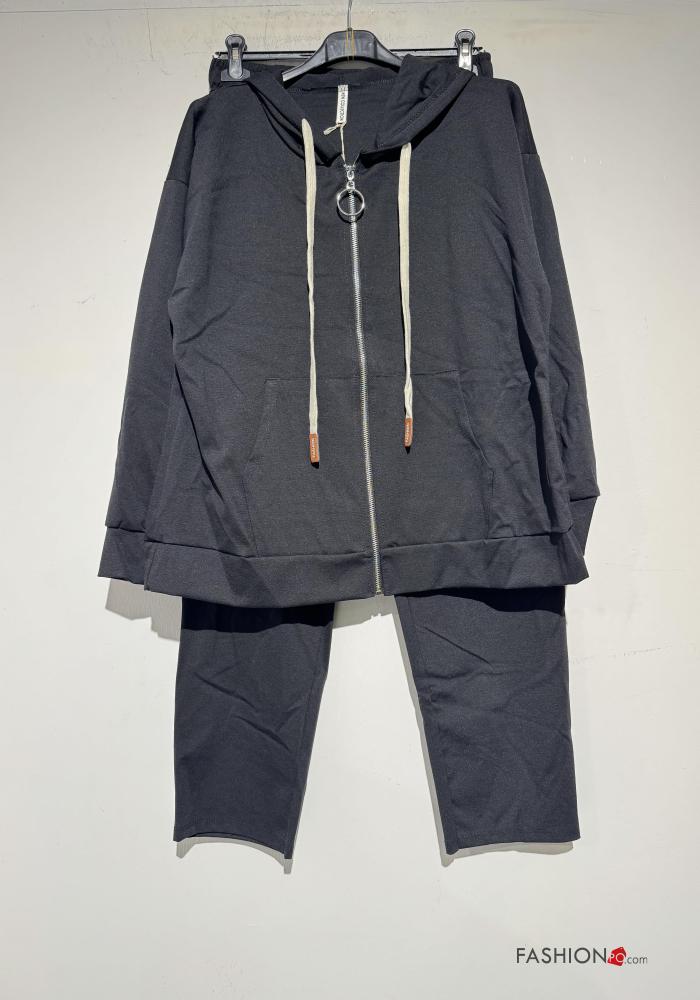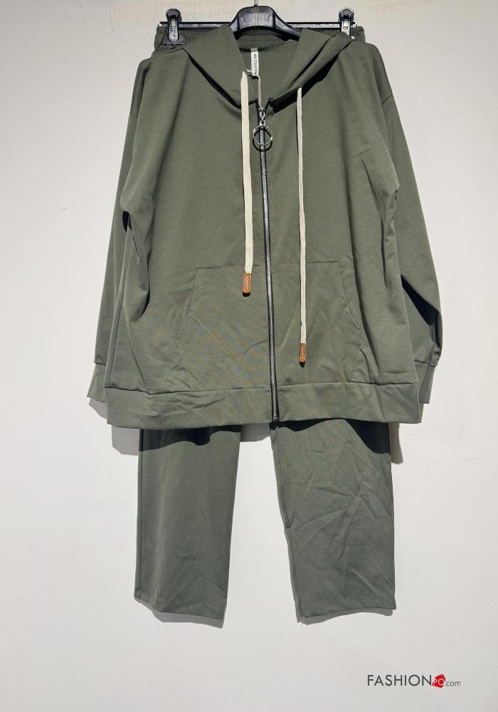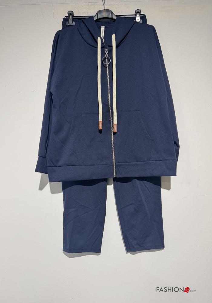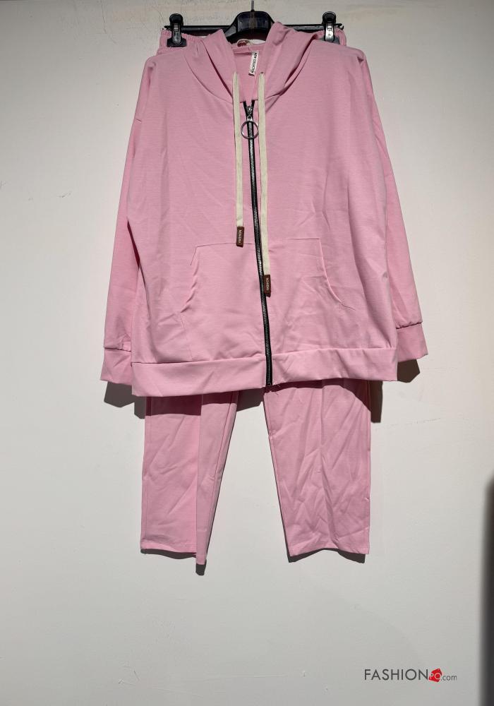 Fato de treino em Algodão com elástico com capuz com fecho com bolsos