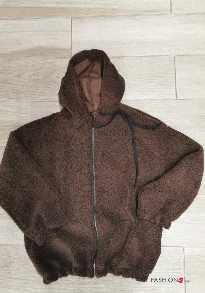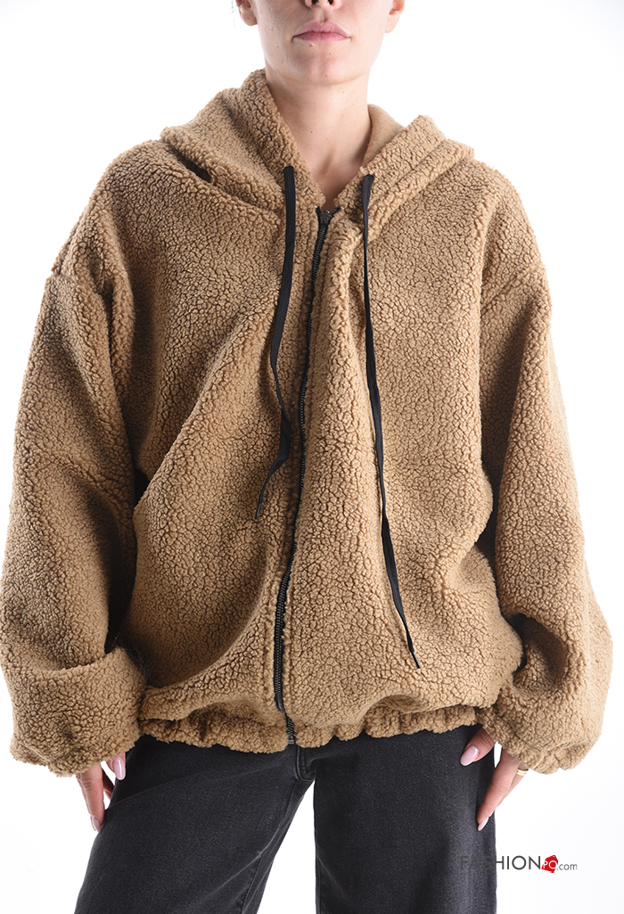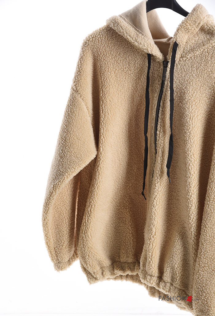 Home > Roupa > Roupa Desportiva > Sweatshirt Teddy com cordão com capuz com fecho com bolsos