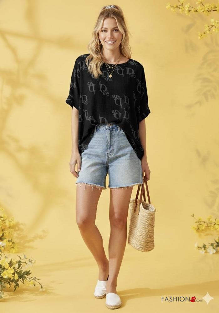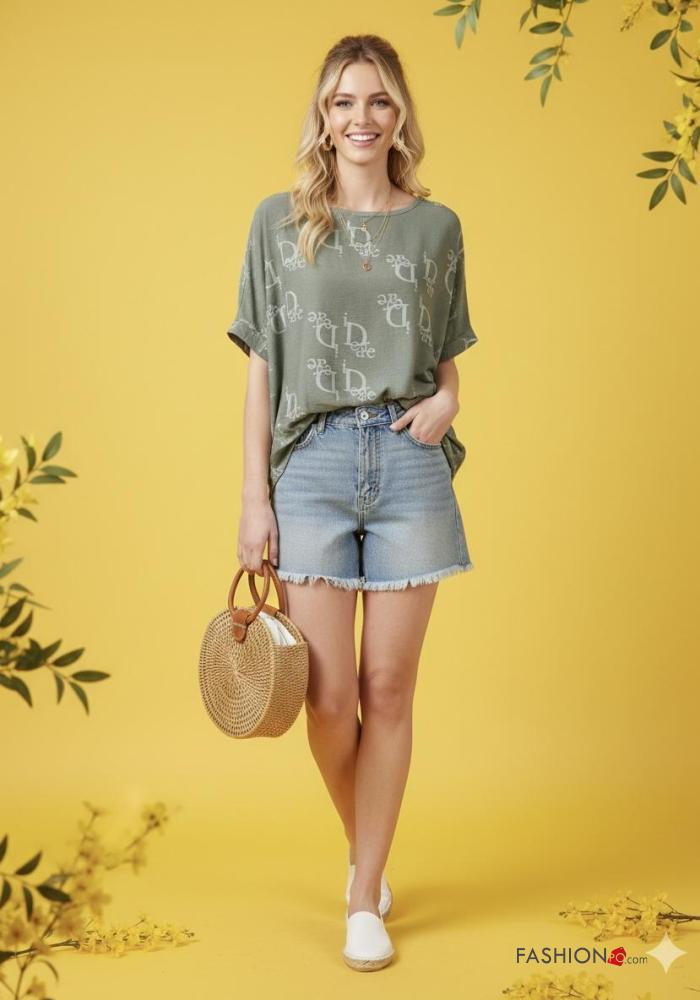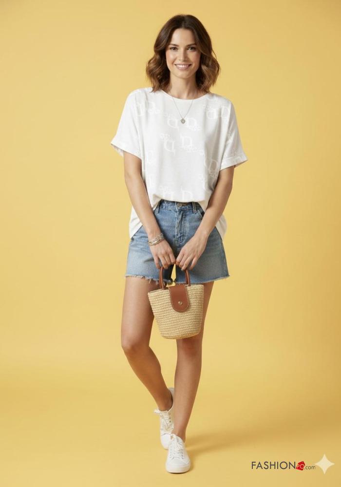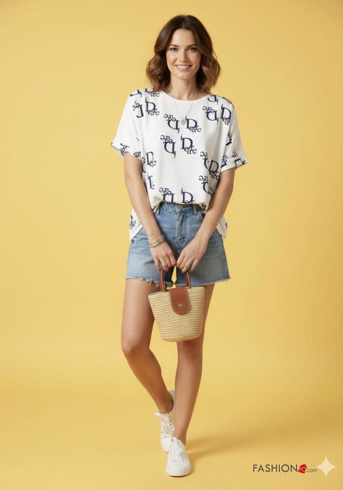 Home > Roupa > T-Shirts & Tops > T-shirt manga curta gola redonda Padrão Estampado