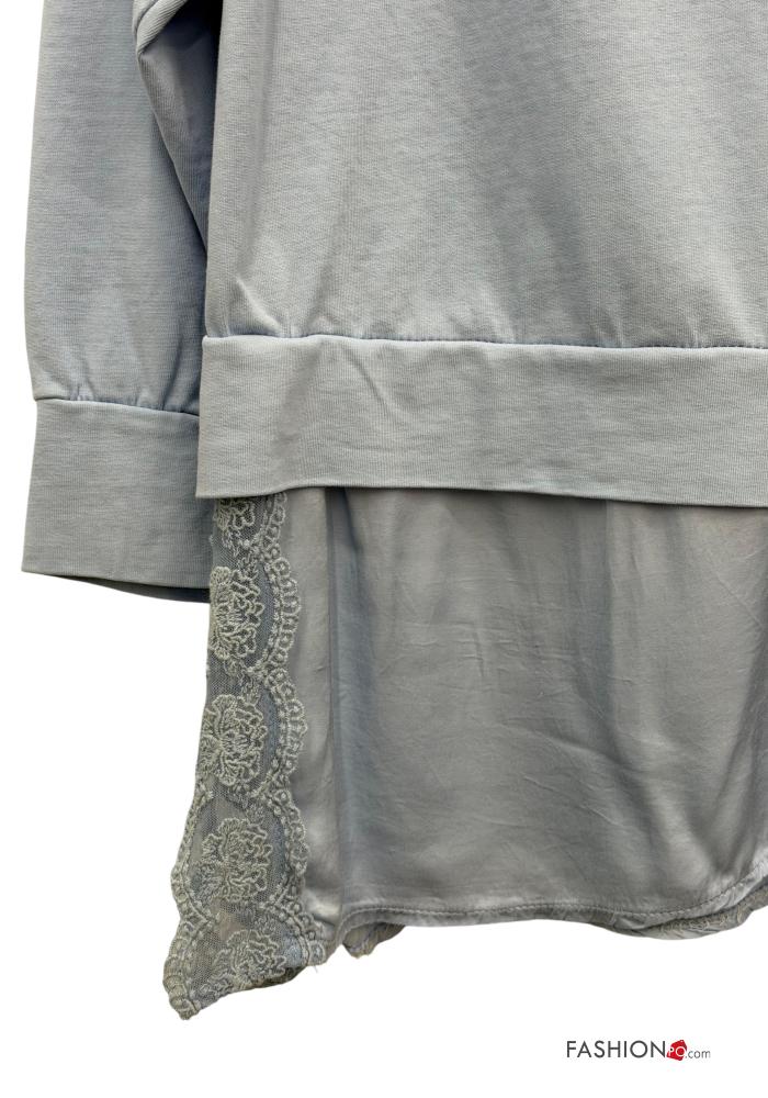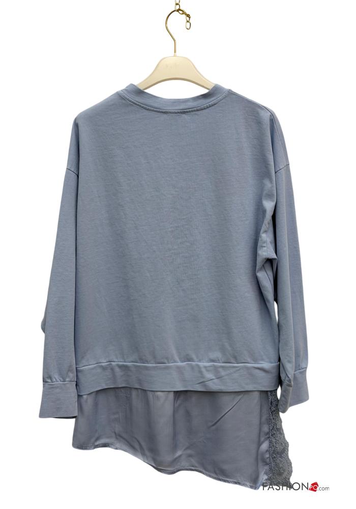 Camisola de mangas compridas em Algodão renda