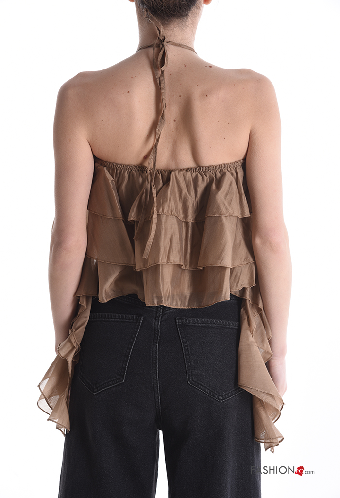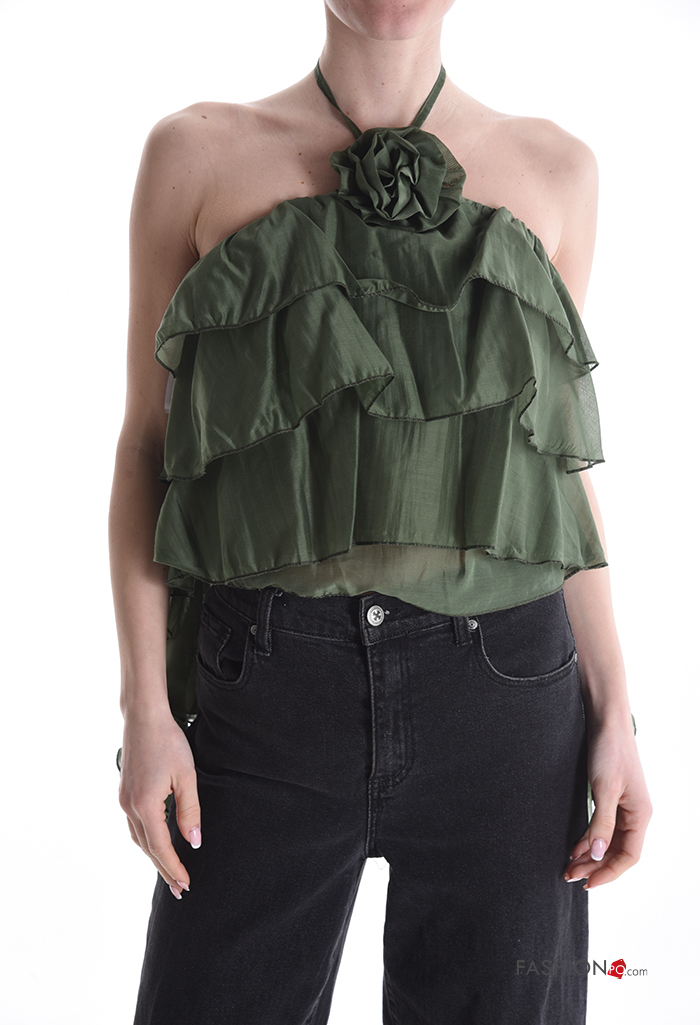 Home > Roupa > T-Shirts & Tops > Top costas abertas curto sem mangas regulável com folhos