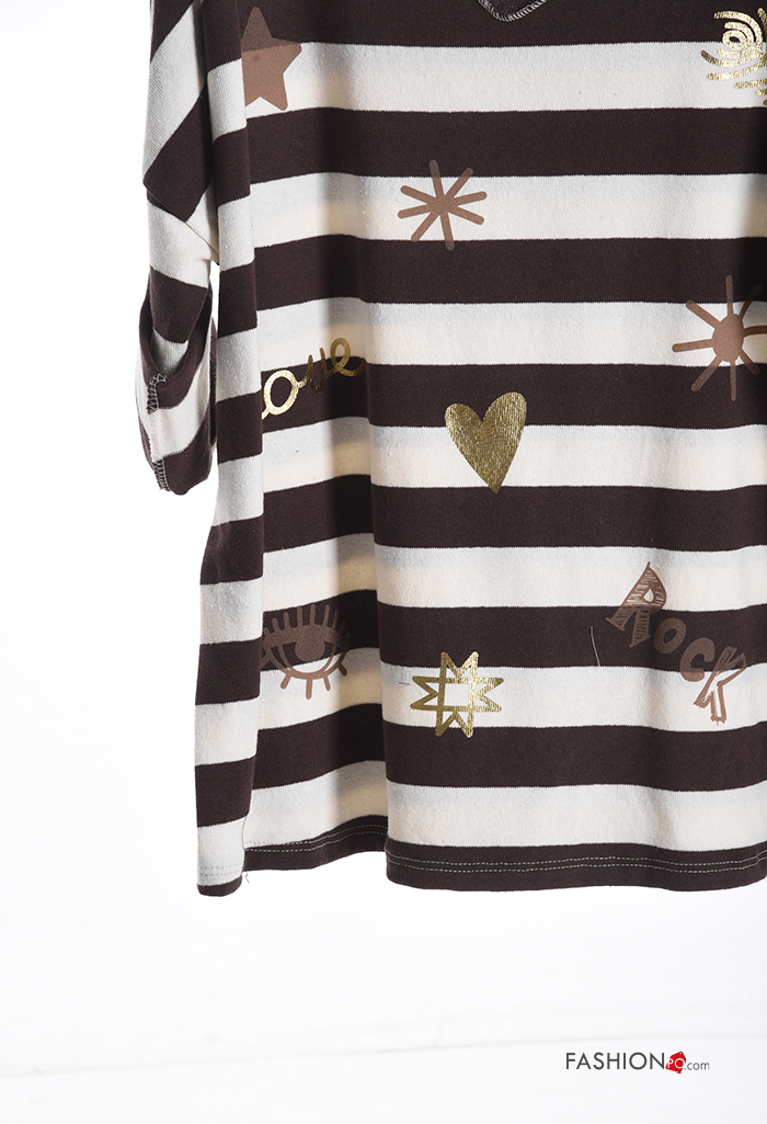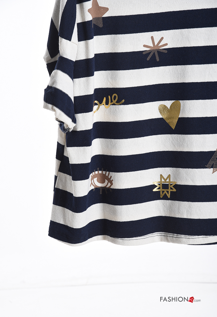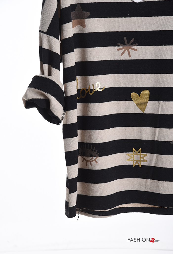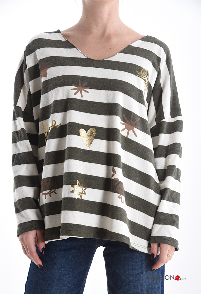 Home > Roupa > T-Shirts & Tops > Camisola de mangas compridas em Algodão às riscas gola V