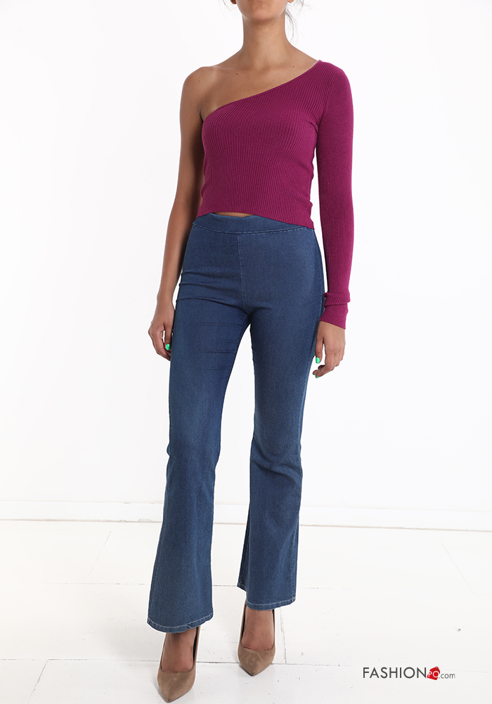 Home > Roupa > T-Shirts & Tops > Top em jersey canelado decote assimétrico